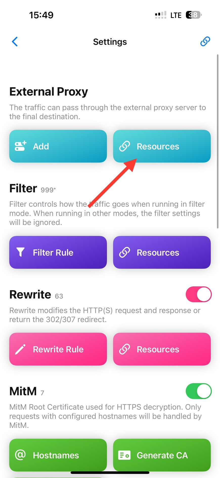 Chọn Resources tại mục External Proxy