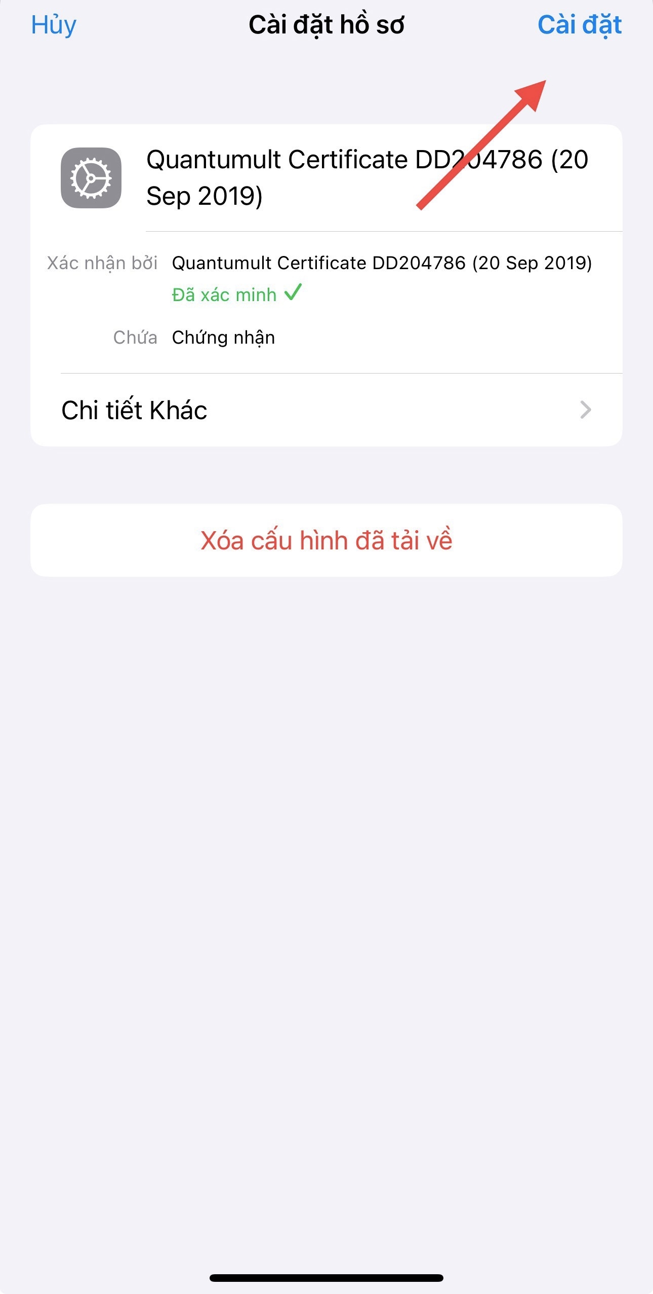 Cho phép tải về thiết bị IOS của bạn, sau đó mở Cài đặt thiết bị Iphone ( IOS ) chọn đã tải về hồ sơ
