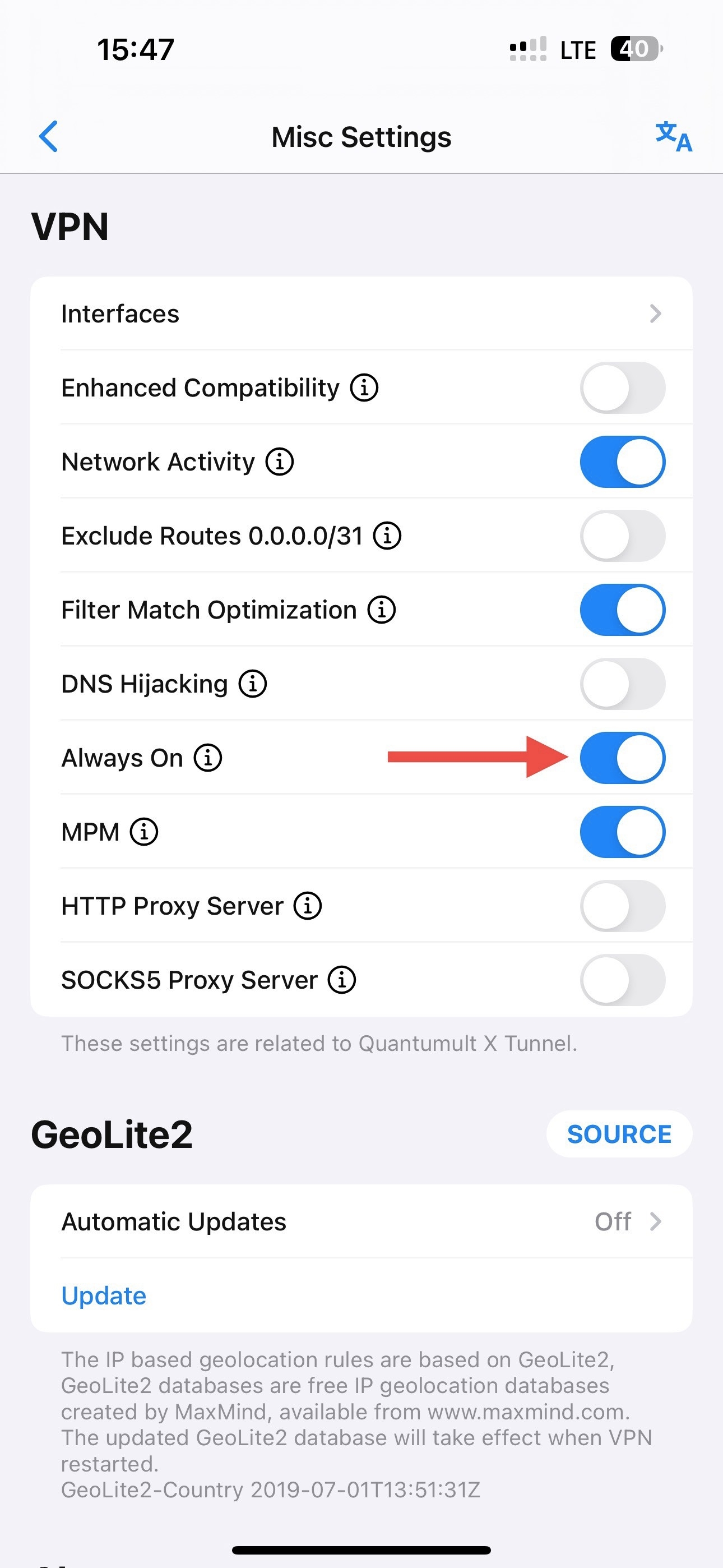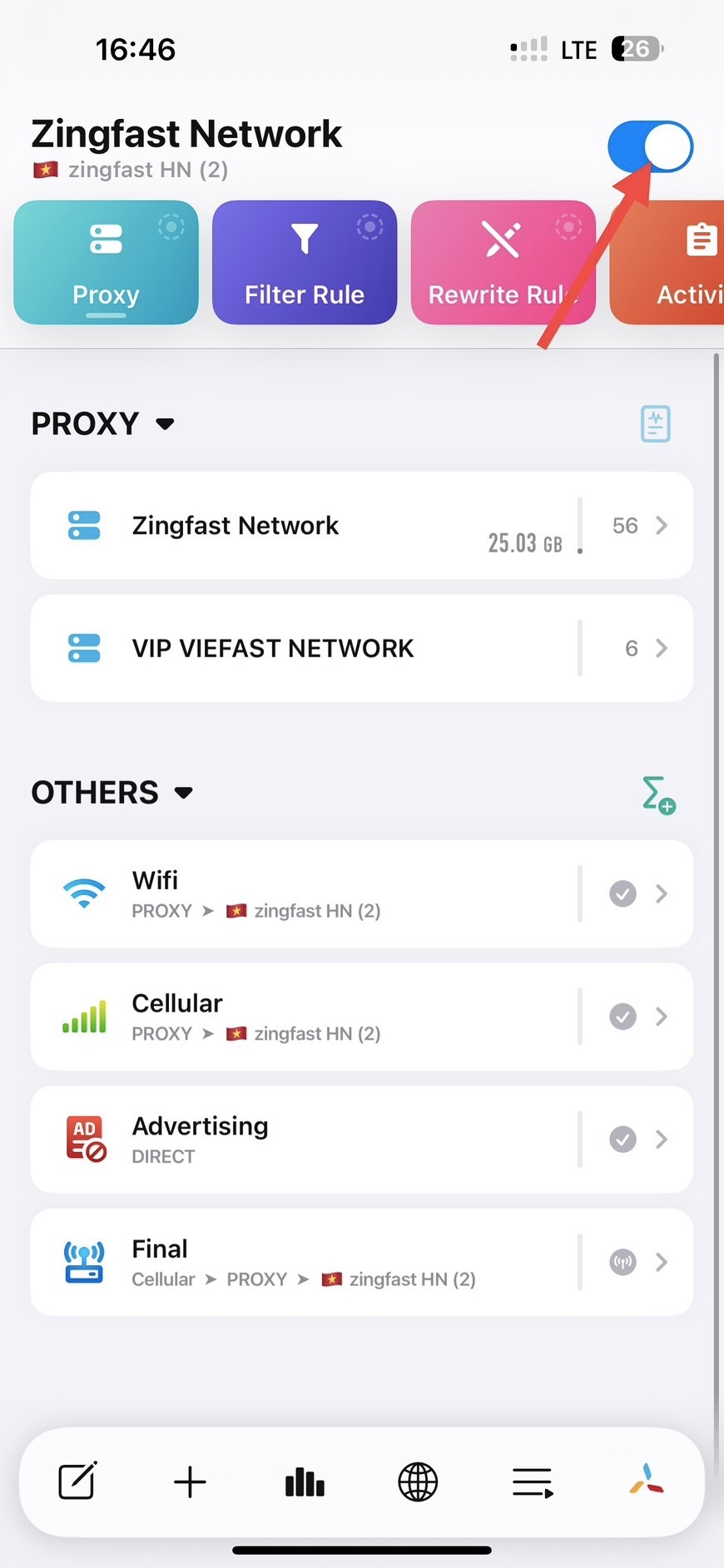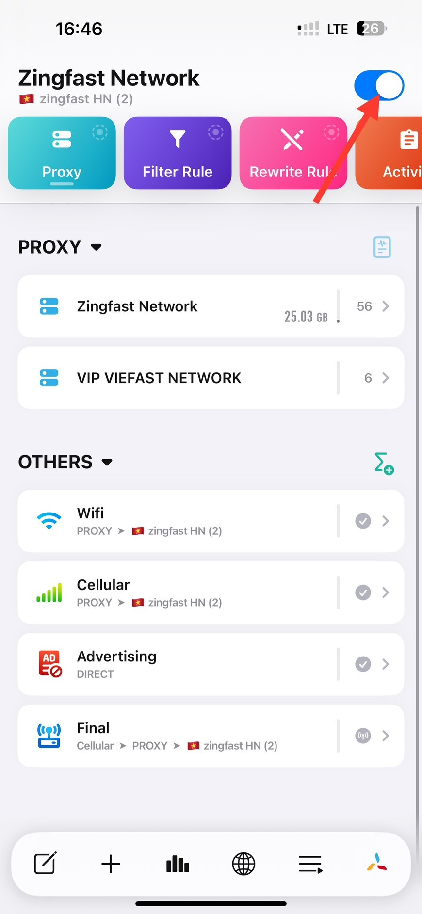 Quay lại App Quantumult X bật MitM lên