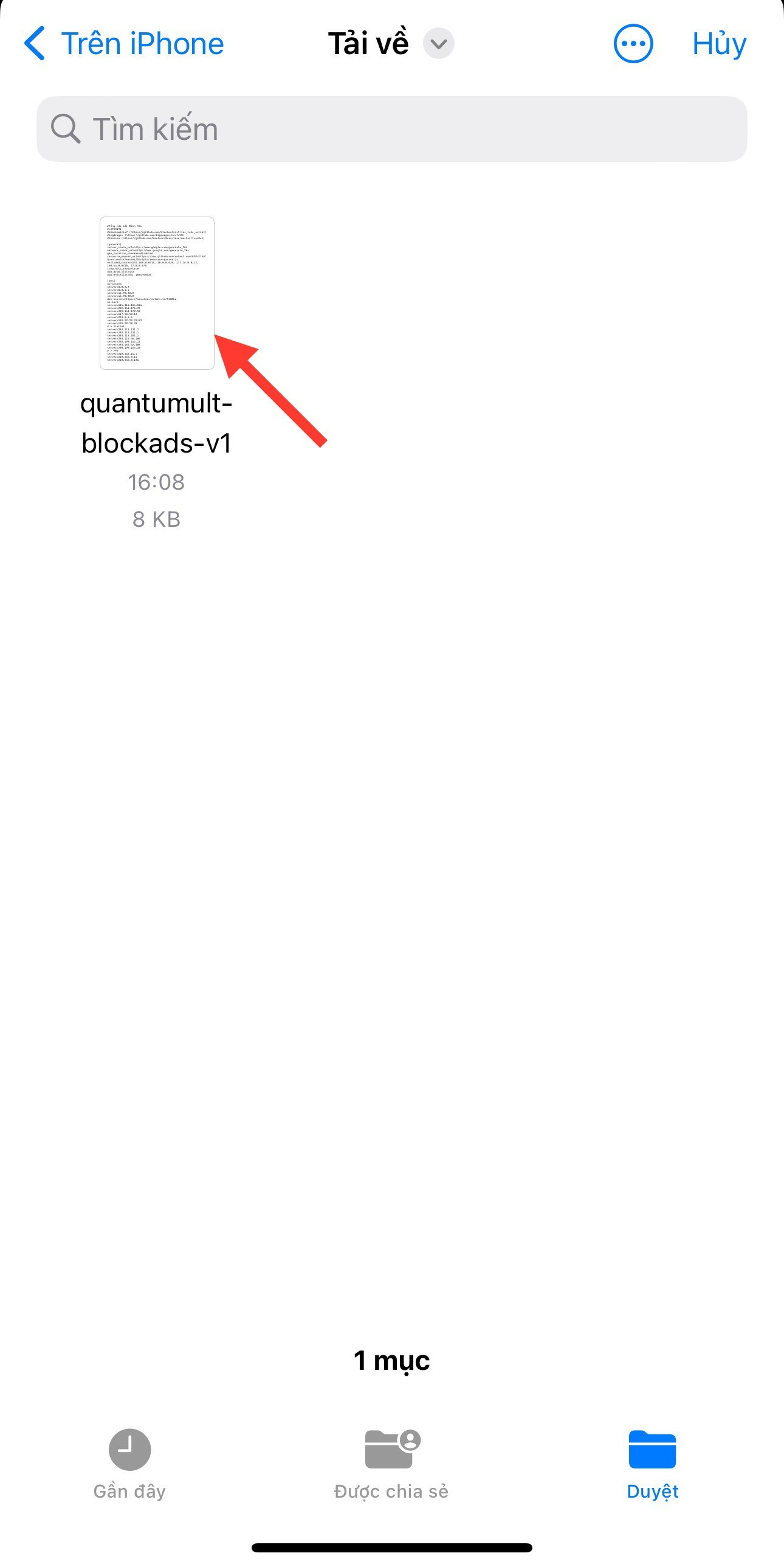 Tìm vị trí lưu file của bạn vừa tải về để import vào app Quantumult X
