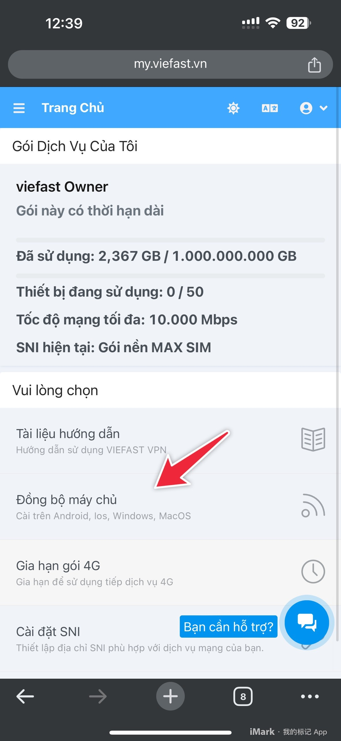 Truy cập vào website chọn đồng bộ máy chủ