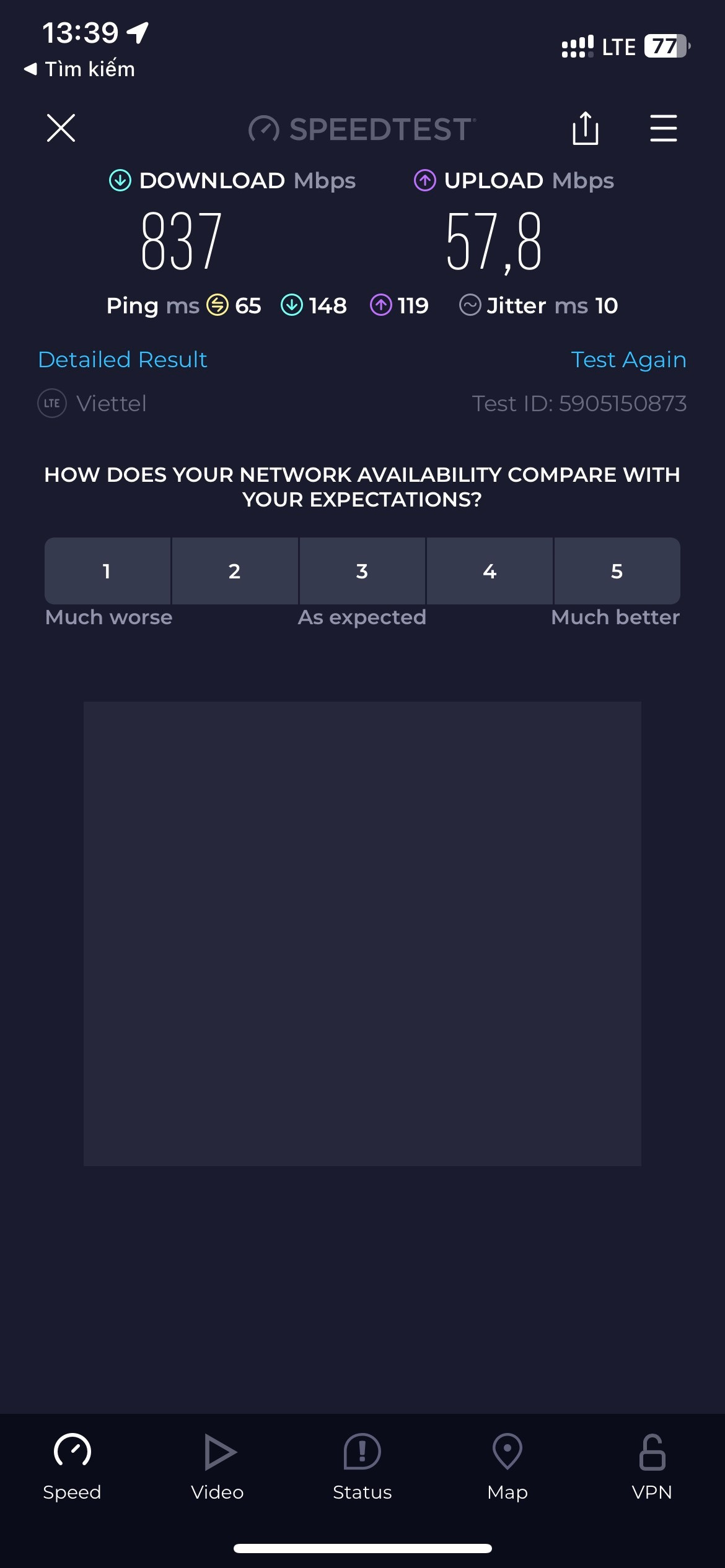 * Khi bạn sử dụng VPN nếu khu vực 4G của bạn rơi vào 10 Mbps thì bạn dùng VPN cũng rơi vào 10 Mbps không thể hơn được, bạn có thể di chuyển nơi khác sẽ cho tốc độ kết nối khác nhau.