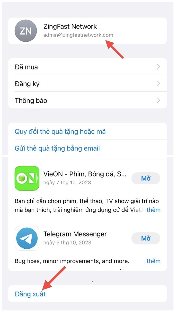 Kéo xuống dưới cùng chọn đăng xuất tài khoản cũ